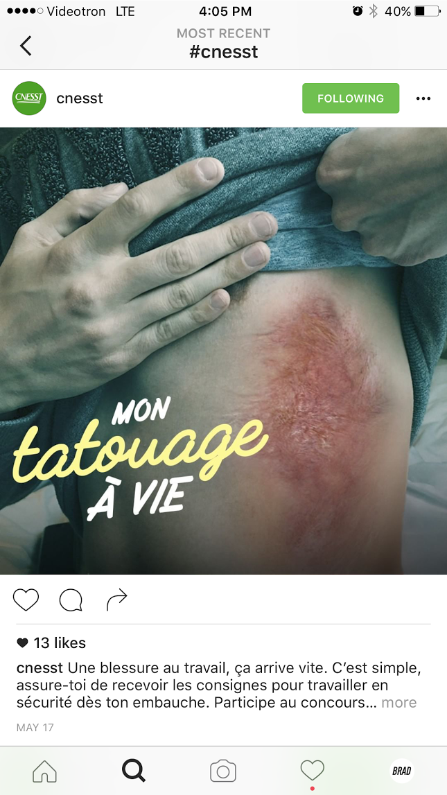 Les jeunes ne s’attendent jamais à ce qu’un accident du travail vienne nuire à leur vie, surtout pas sur Instagram.